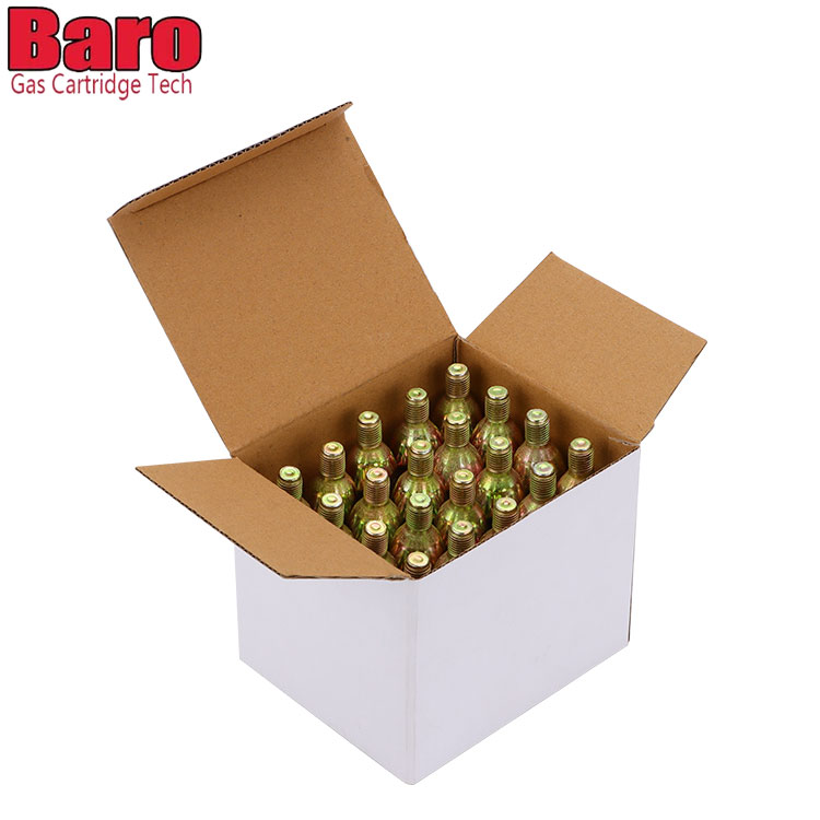 - 16G CO2 कारतूसहरू सबै 16 ग्राम बियर डिस्पेन्सरहरूसँग मिल्दो फूड ग्रेड, प्रत्येक बक्समा 16 ग्राम शुद्ध फूड ग्रेड कार्बन डाइअक्साइड हुन्छ, यसलाई बियर उत्पादनको लागि उत्तम विकल्प बनाउँछ।
