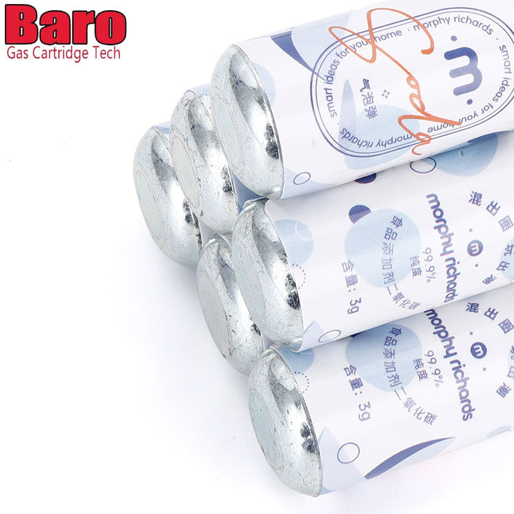 - Seltzer पानी को लागि खाद्य ग्रेड CO2 कारतूस बजार सोडा मेसिन र अन्य कार्बन डाइअक्साइड चार्जर संग उपयुक्त हुन सक्छ, प्रत्येक सिलिन्डर 3g शुद्ध खाना ग्रेड कार्बन डाइअक्साइड समावेश छ, सोडा बनाउन को लागी सबै भन्दा राम्रो विकल्प हो।